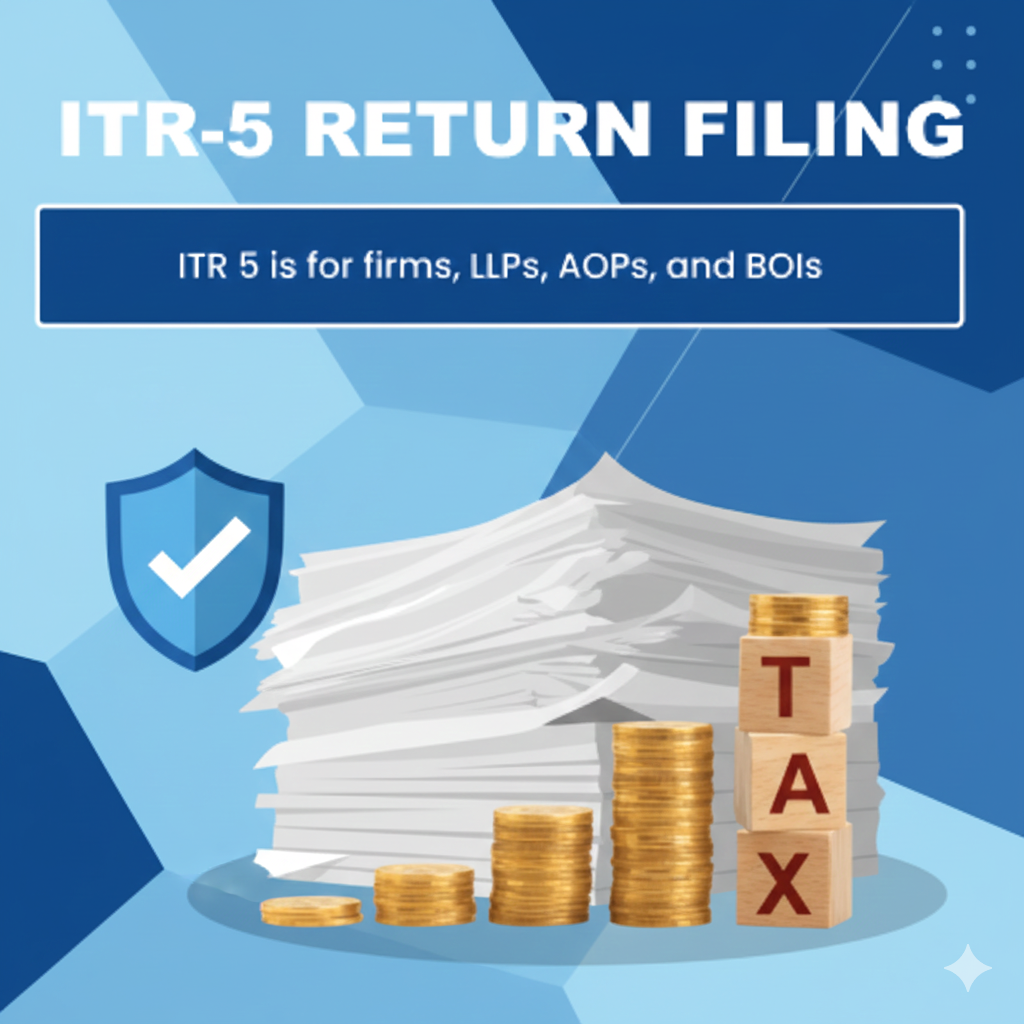 ITR-5 is filed by entities that are not individuals, Hindu Undivided Families (HUFs), or companies. This primarily includes Firms, Limited Liability Partnerships (LLPs), Associations of Persons (AOPs), Body of Individuals (BOIs), and cooperative societies.
